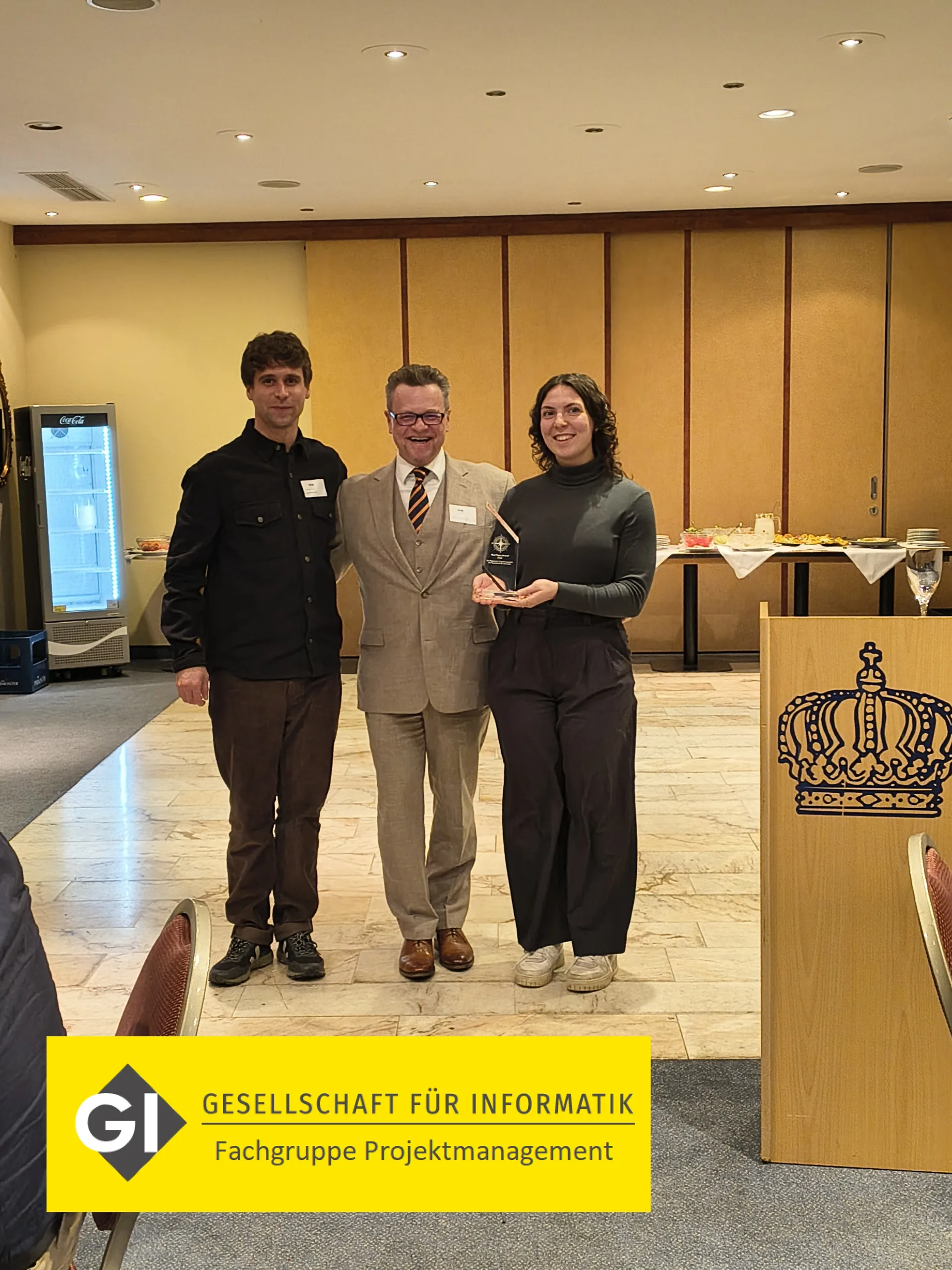 Die Fachgruppe Projektmanagement freut sich, bekanntzugeben, dass der Best Paper Award der PVM-Fachtagung 2025 an den herausragenden Beitrag von Larissa Koch de Souza und Luca Randecker vergeben wurde. Ihr Paper mit dem Titel „Wege zur Post-Agilität – Eine Analyse der letzten zehn Jahre PVM-Fachtagung“ überzeugte durch seine fundierte Analyse der Entwicklung des Agilitätsverständnisses im Projektmanagement.